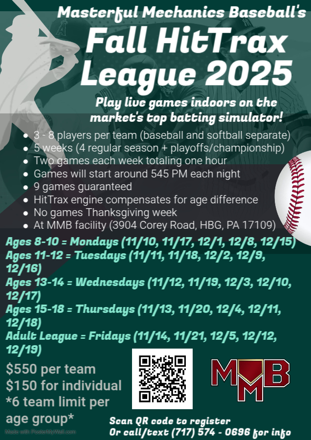 Fall HitTrax League 2025 Baseball and softball November/December $550 for team $150 for individual