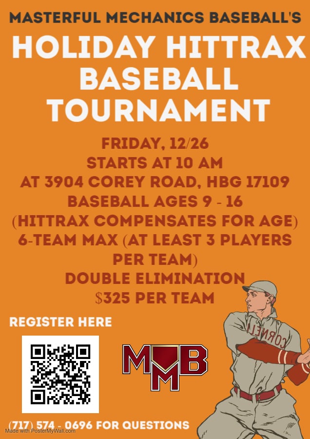 Holiday HitTrax Baseball Tournament Friday, 12/26 at 10 AM $325 per team
